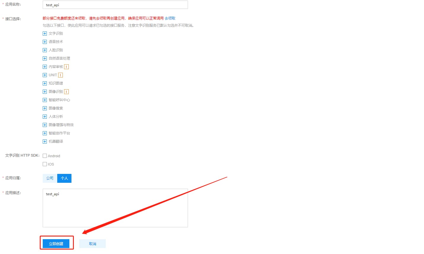 1 访问百度智能云,开通API